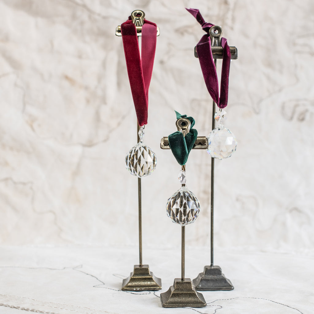 From antique chandeliers and strung with velvet ribbon, each one a keepsake in its own right. Sparkle each day with one!