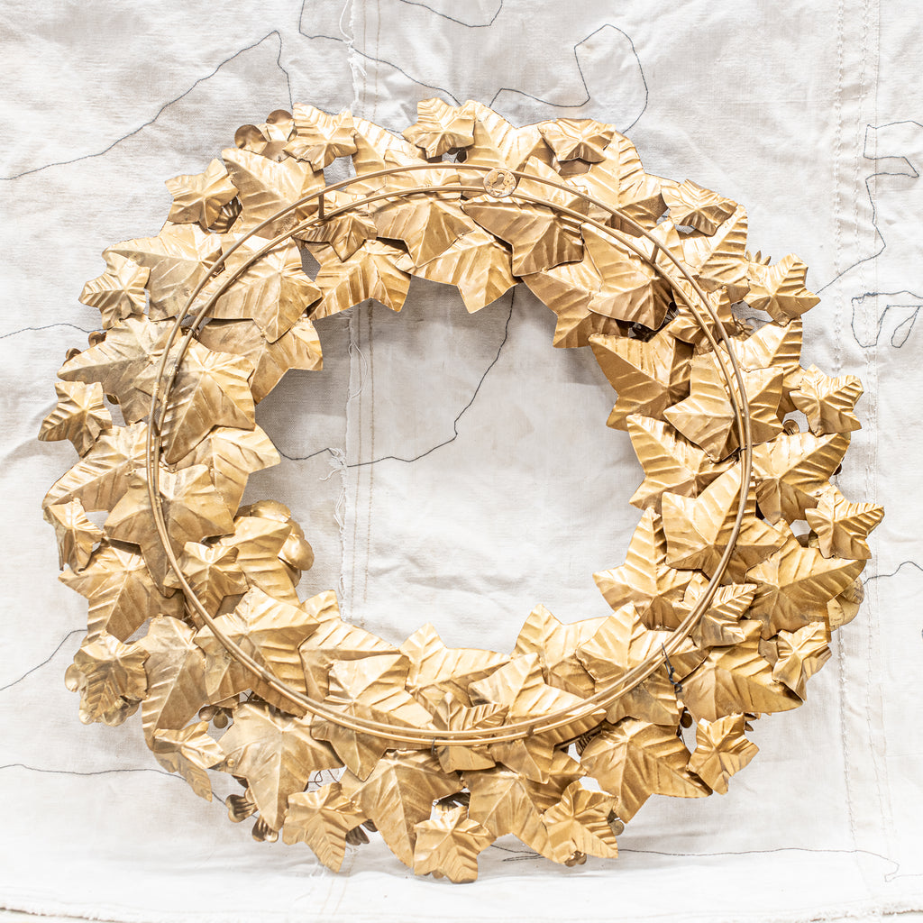 A substantially large wreath with flowers and leaves that can be “fluffed” up