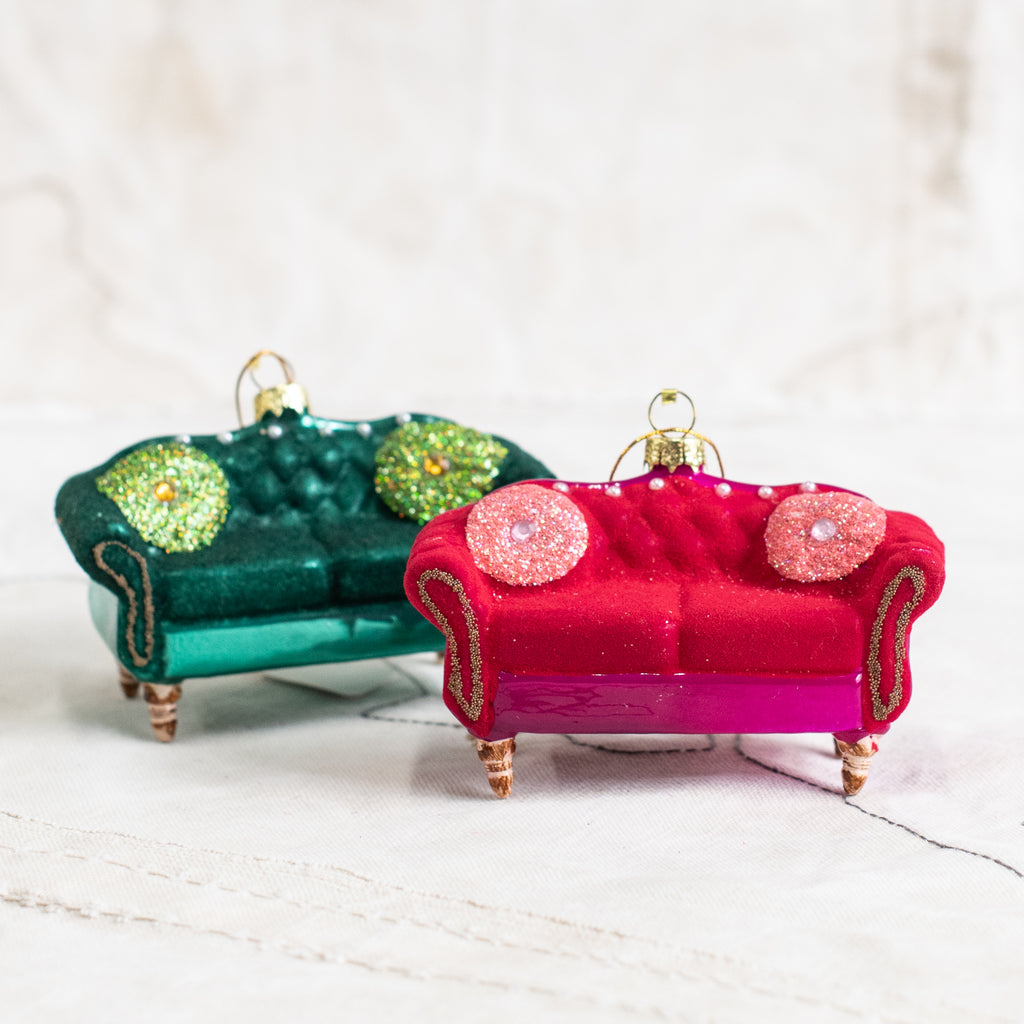 Glass and flock make this velvet settee - a quirky gift for the decorator in your family