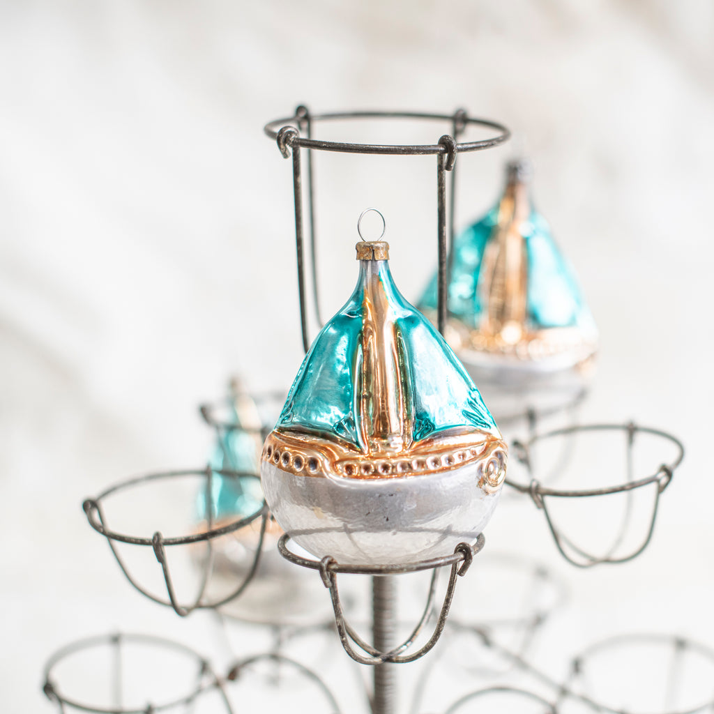 These precious, mouth-blown German Christmas ornaments are made just as they were at the beginning of the 19th Century in Germany in restored original old moulds, affectionately hand-painted, patinated and topped with stylish iron caps in the proper traditional style.