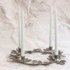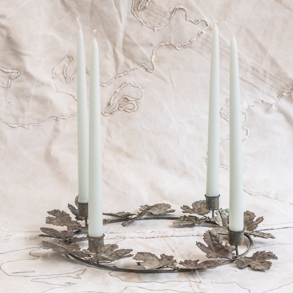 Stunning Table centrepiece with Verdigris leaves nestled around four taper holders