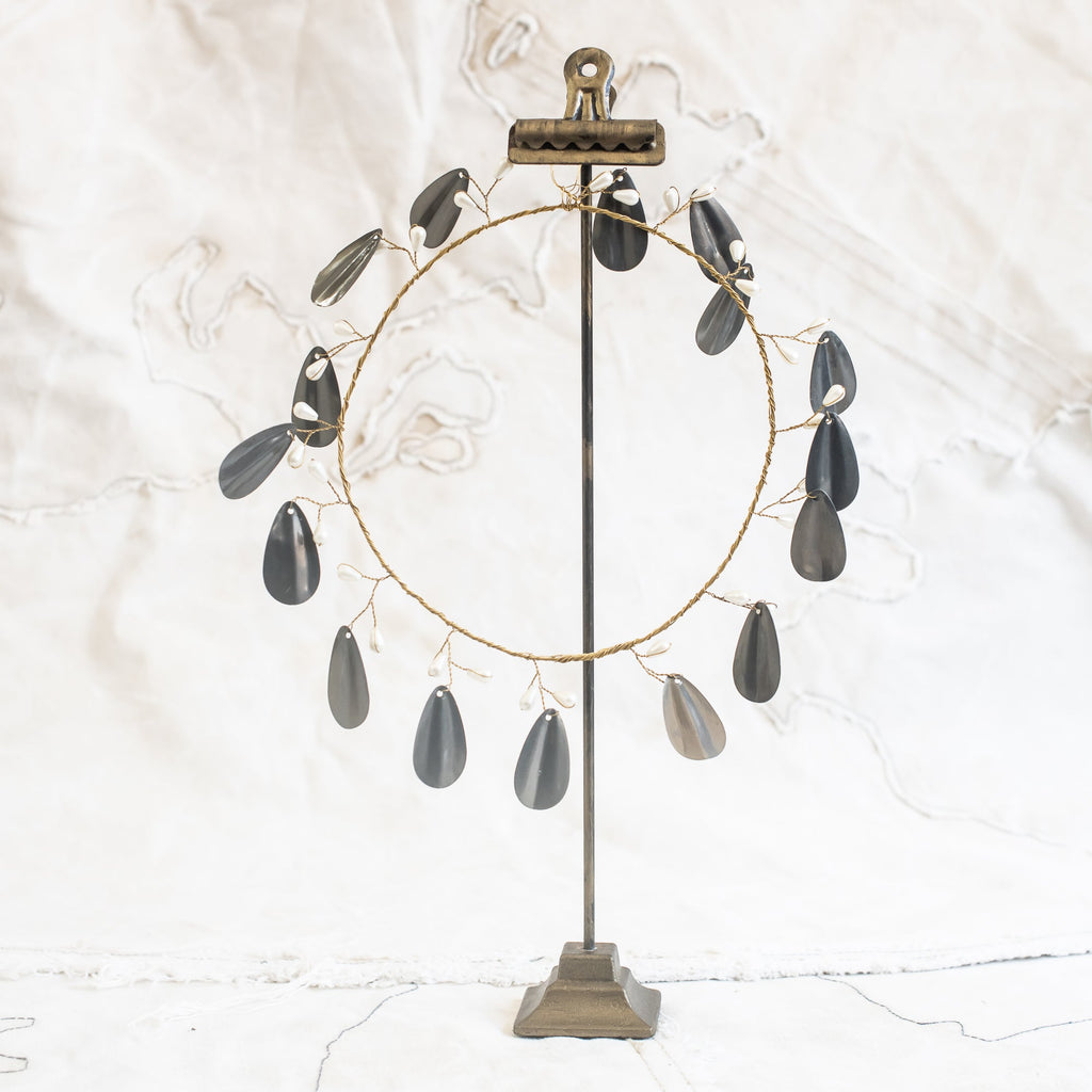 Warm zinc grey leaves swaying between branchlets of pearlescent buds