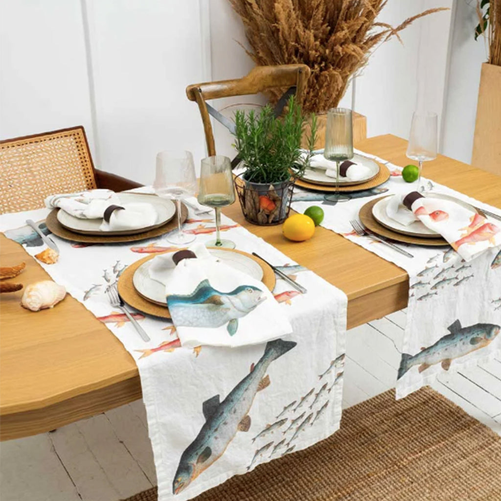 Illustrated Linen Table Runner - Sea Fish